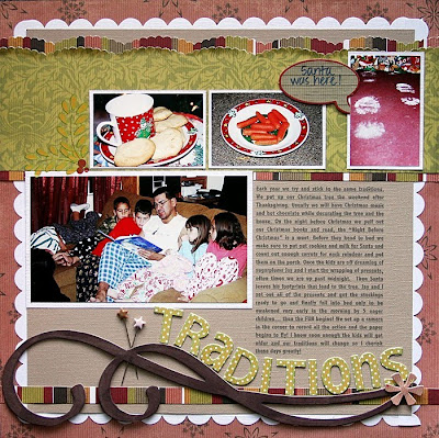 Now for some Dream Street.... a layout I did using the "Merry and Bright" collection with some fun photos of the Christmas traditions we do each year. I have been wanting to do this one for awhile.